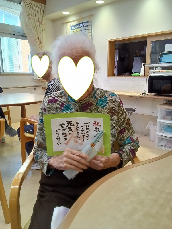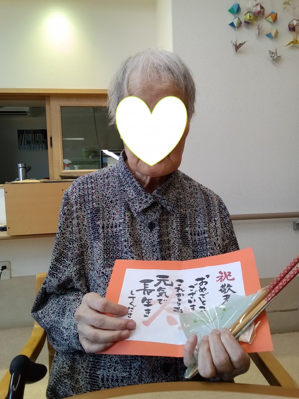 敬老のお祝いとして感謝状とお箸をプレゼントしました。