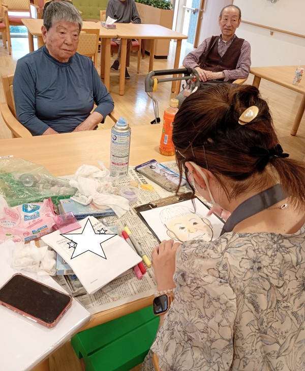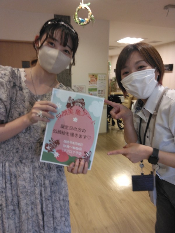 絵描きさんのご厚意で毎月アミカの郷亀有に似顔絵を描きに来てくださるとのこと♪