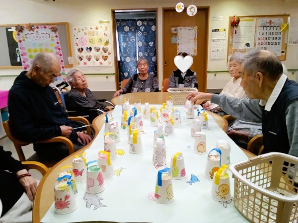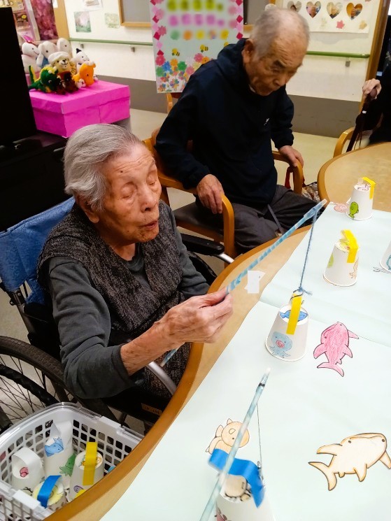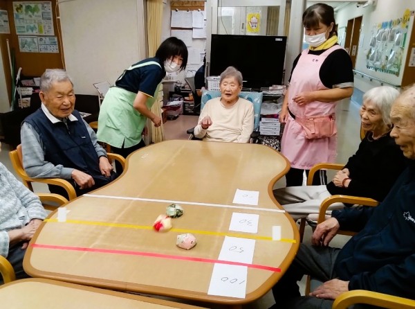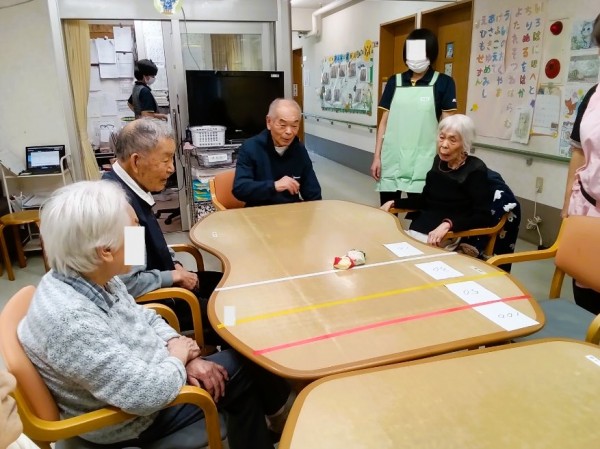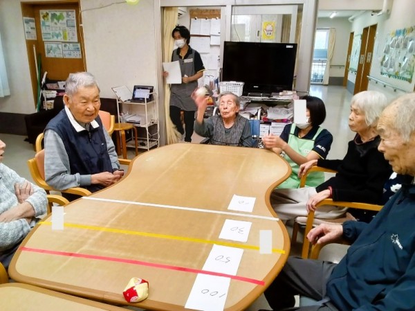 「100点!」「狙いは100点!」とスタッフに煽られながら投げるご入居者様、、、