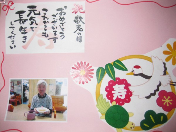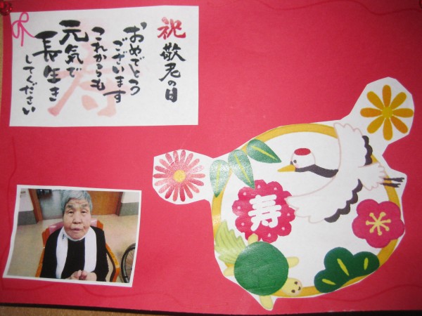 9月15日は敬老の日!(^^)!という事でスタッフよりご利用者様の写真付きメッセージのプレゼント。