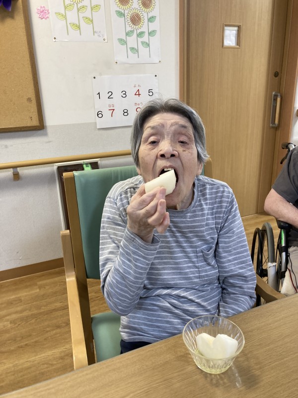今日のおやつは秋の果物の梨を召し上がって頂きました。