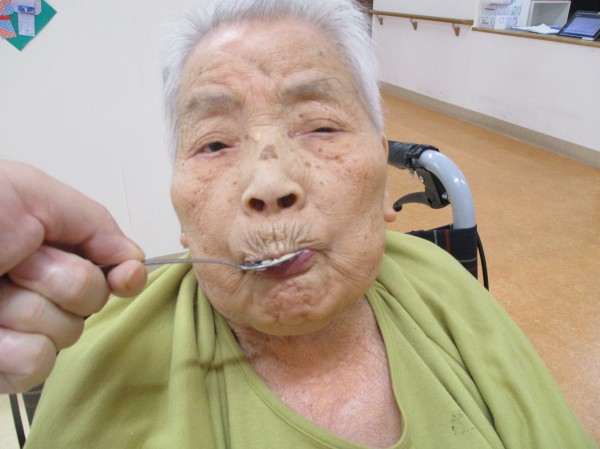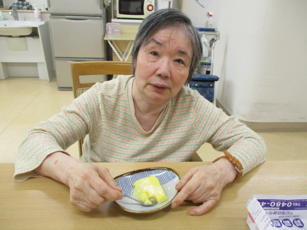 いつものおやつの後に、職員がプリンを買ってきてくれました♪