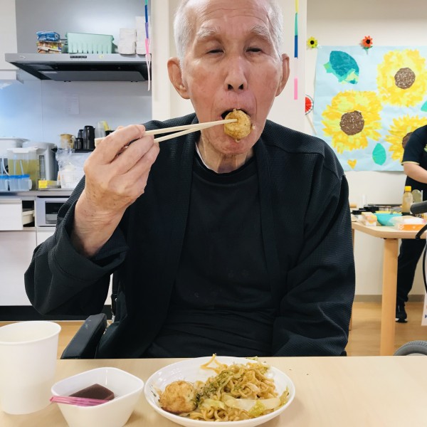 今年の敬老会では、たこ焼き、焼きそば、チョコバナナ、水ようかん、ぶどうゼリーをご用意しました♡