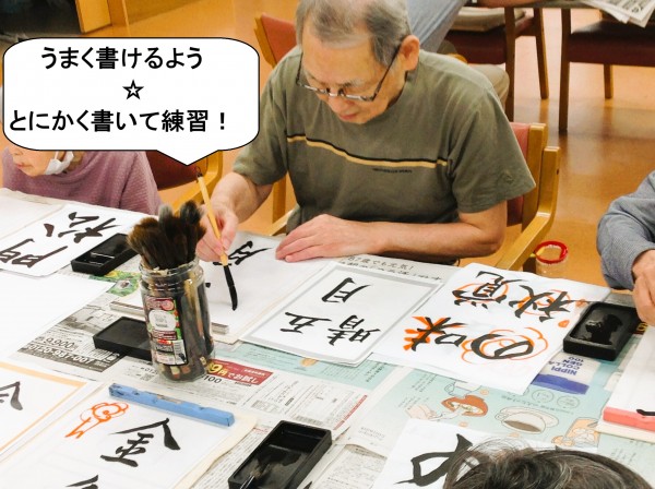 月1回の書道を楽しみにされている方もたくさんおられ、皆様頑張って良い作品を作られていました!