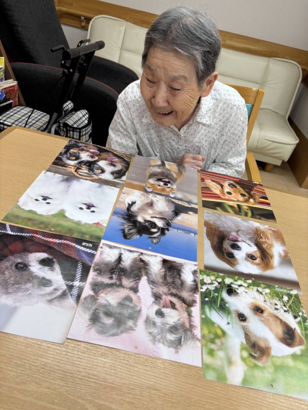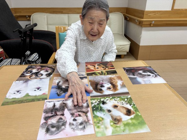 テーブルに並べられた犬のお写真をご覧になられ「みんな可愛いね!」っとお話されるお母様I•͈ ·̭ •͈U