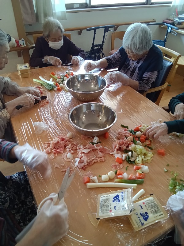 お肉やお野菜、豆腐等、材料を皆様に切っていただきます♪