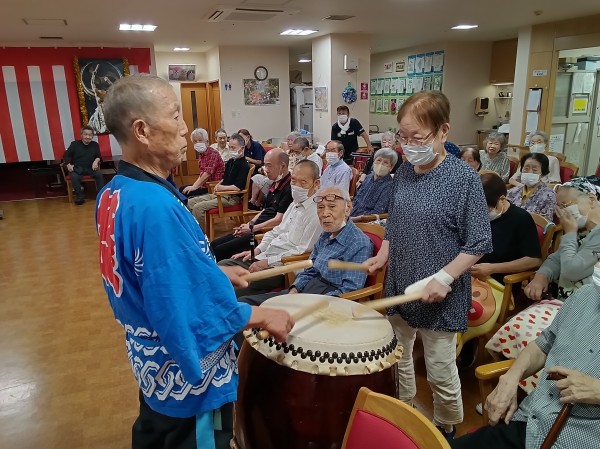 一歩会さんリーダーの横笛演奏に合わせて、和太鼓の小川さんが歌を歌いました♪