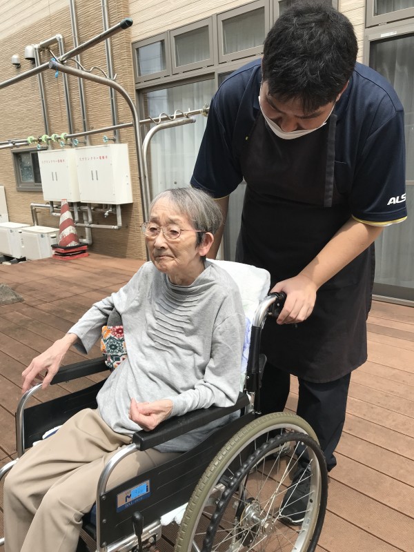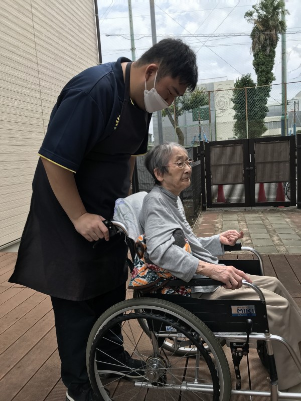秋晴れの中、利用者様とスタッフ同行でホームの