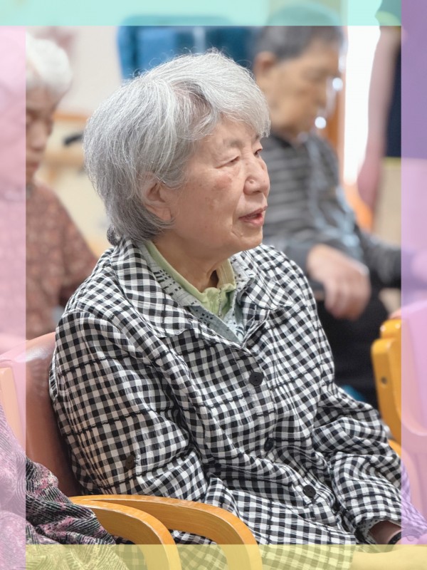 リズミカルな曲になるとタンバリンや鈴やマラカスなどで皆様と曲に合わせて鳴らし盛り上がりました。