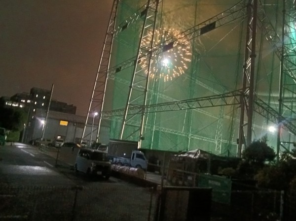 大きな振動、音と共に、見事な花火が夜空を彩りました。