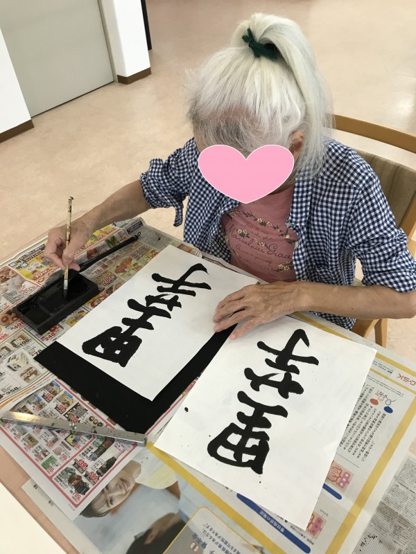文字の大きさ、角度、半紙の使い方。