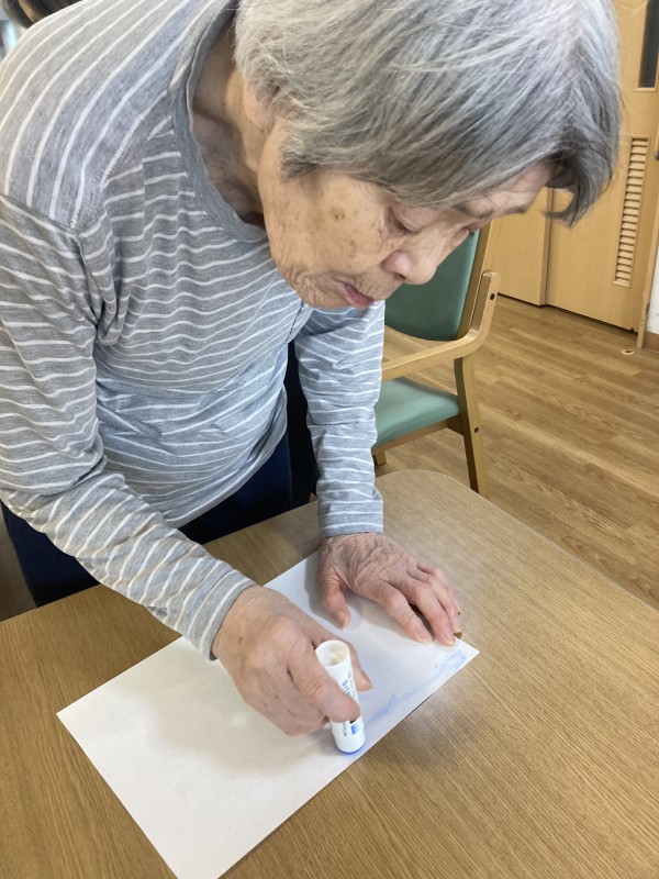そして次は秋らしい塗り絵を用意し塗分けていき、貼り付けていきます。