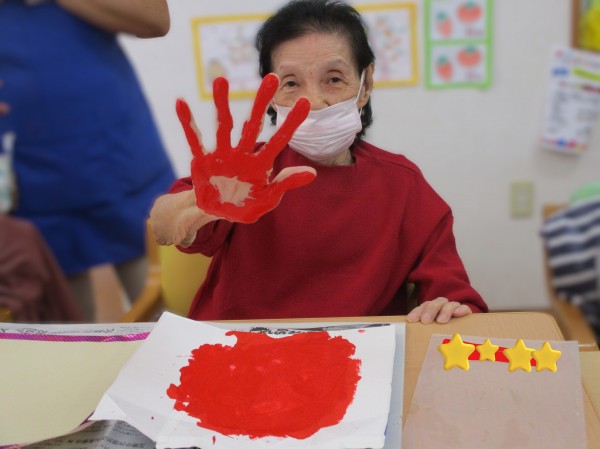 絵具を手に塗るときは、「うわーー!」と叫び声(笑)