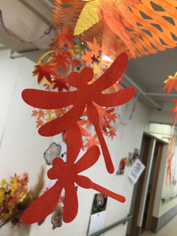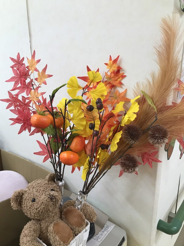 壁だけではなく、ホール内にも秋っぽさを飾ってみたのでした ^^v
