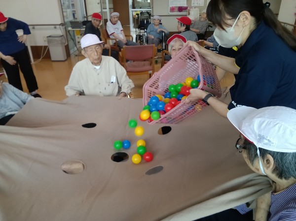 みんなの家松伏の運動会イェ~イ(^^)/ボール落としゲーム開始!