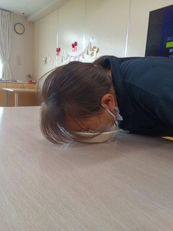 今回も運動会の催し物の中のラムネ探しでの一幕でお皿の中にラムネが3個入ってその上に小麦粉がかけておりますので真剣に行うとどのようになるか・・・