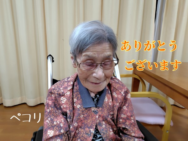 礼儀正しく、控えめで、いつも周りを気遣ってくださる101歳様。見送る背中が頼もしいです。
