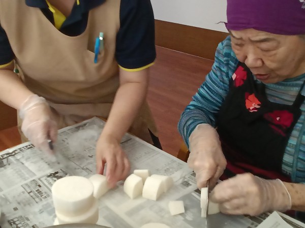 さすがさすが!!ホームに来る前は、皆さんご家庭の主婦だったんですから、豚汁作りなんて、オチャノコサイサイです(*^^)v