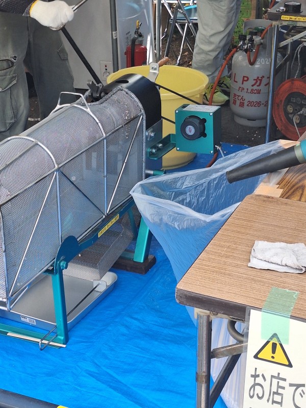 ご年配の方ならご存じかと思うのですが、ポン菓子を作る機械です!