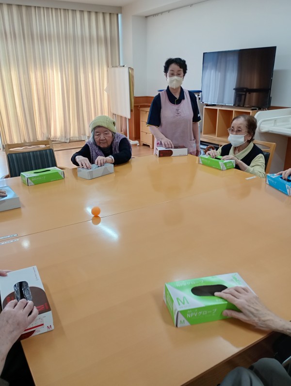 空箱をリサイクルして机ホッケーを行いました(*‘ω‘ *)