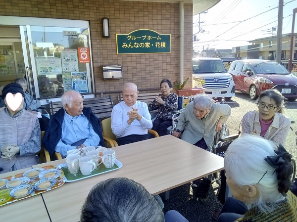 中庭に皆さんの歌声とギターの音が響き渡り楽しいおやつタイムとなりました♬