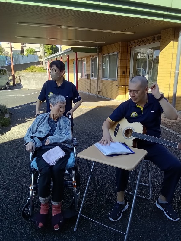 今日は、屋外でのギター生演奏とおやつタイムを行いました♡