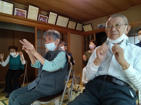 まずは、「憧れのハワイ航路」と「リンゴの唄」の曲に合わせて、身体を動かしました(^o^)丿
