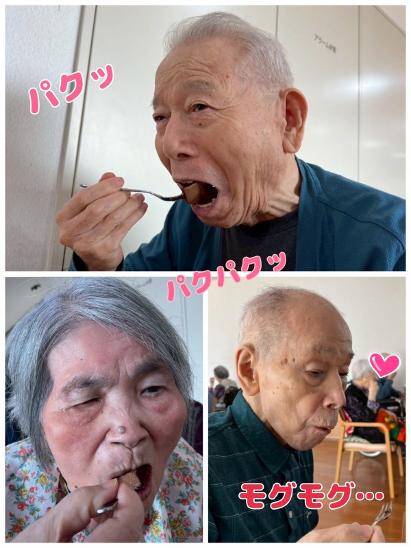 食後のデザートに、いただきま〜す♪と頬張る皆様。甘〜いケーキは別腹ですね!