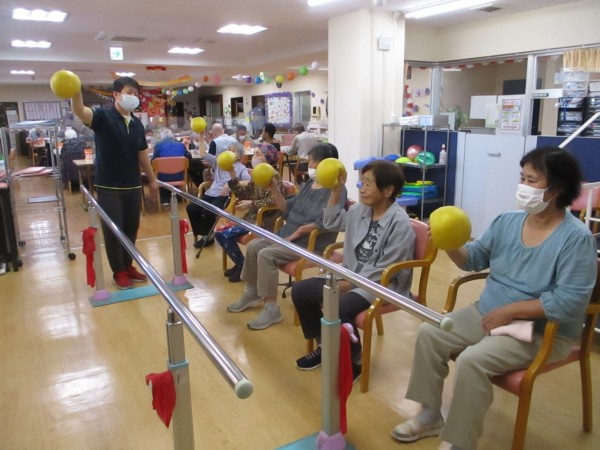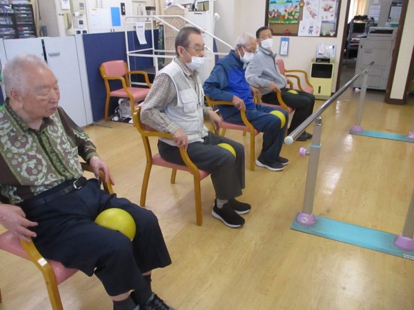 本日はボールとセラバンドを使った機能訓練の様子をご紹介いたします。