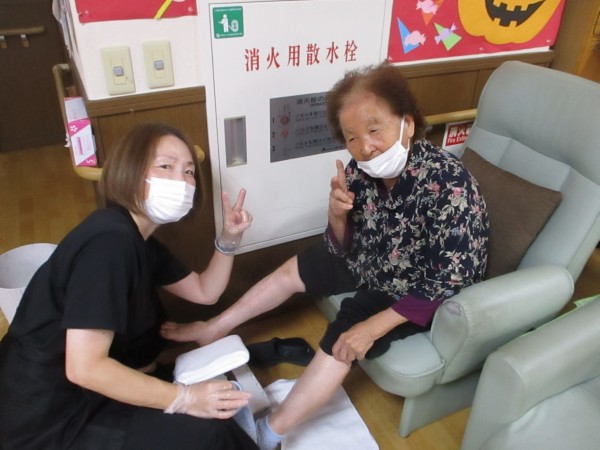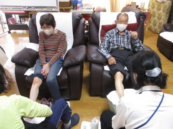 やさしいタッチで行われる施術に、皆様からは「とても気持ちいい」「眠くなっちゃうね」と笑顔が見られ、心も体もリラックスされたご様子でした。