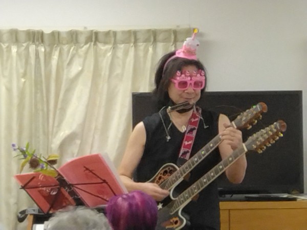 お笑い担当ギタリスト?はバースデーケーキの被り物とハッピーバースデー眼鏡を装備して歌います(;・∀・)