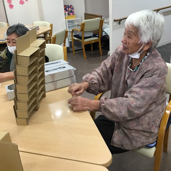 段ボールで箱を作り積み重ねていくゲームです。
