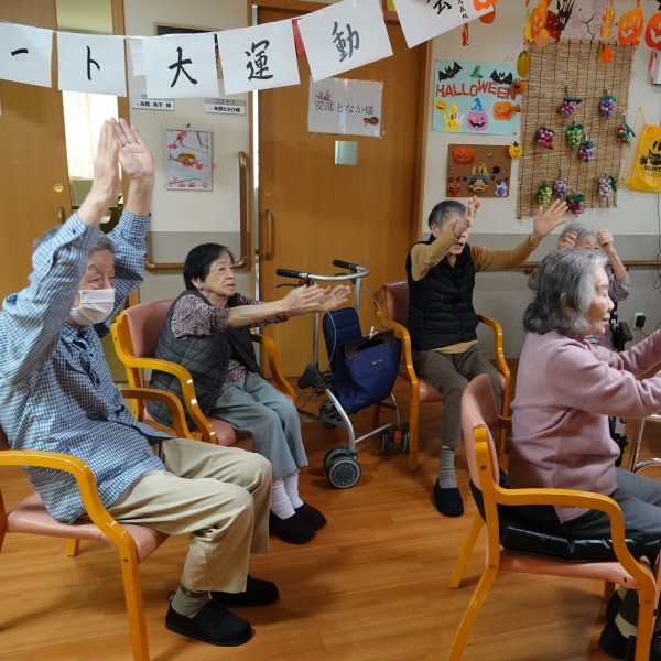 今日はリモートで大運動会が行われ、皆さんで参加しました。