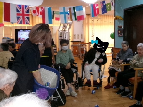 風船に翻弄されながら第1種目の風船バレー終了(/・ω・)/