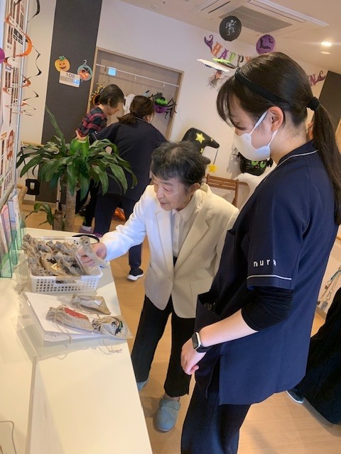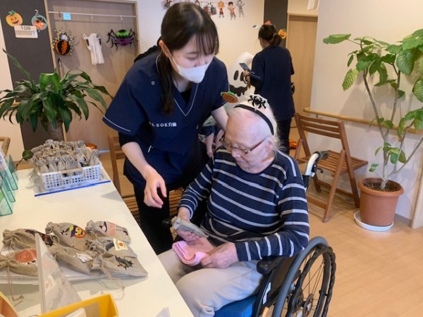 職員は、カチューシャやメガネを付けたり、ある職員は魔女姿になってくれました。