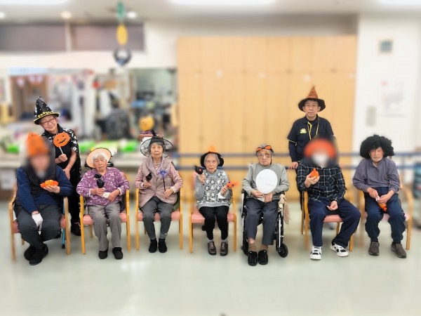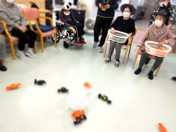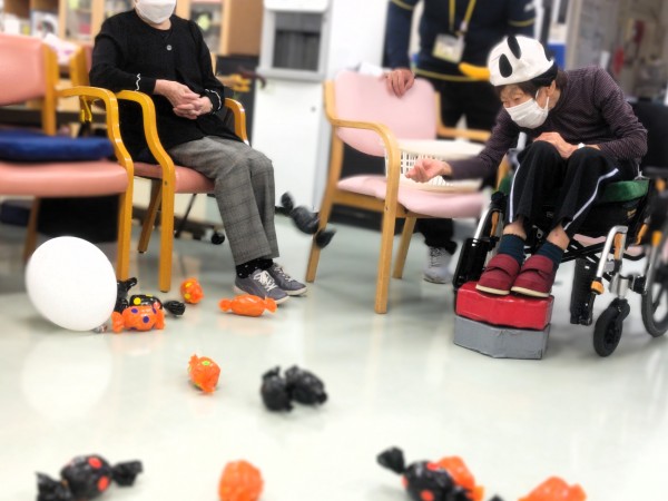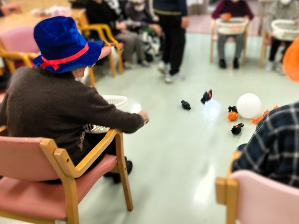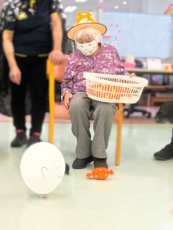 お化けに飴を!と題して帽子やカツラを被ってプチ仮装をしながらゲームをしました!