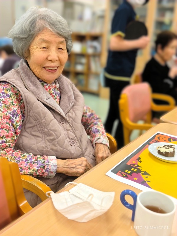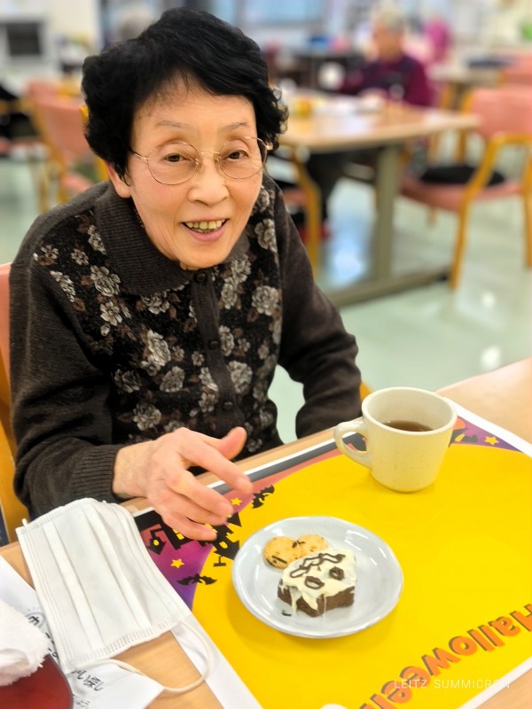 本日のおやつは????おばケーキとプチせんべいお茶は紅茶をご提供????