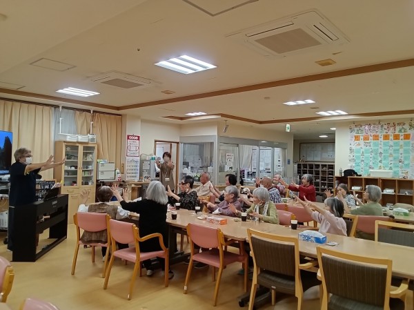 その職員のリードで、歌唱やちょっとした運動を参加者の皆様にやっていただきました。