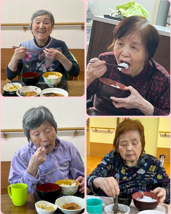 職員がおかずを盛り付けている隣で 利用者様がご飯とお味噌汁をよそって下さいました