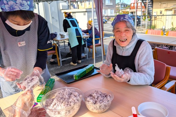 先日、畑で獲れたサツマイモのおにぎりとゆかりおにぎりの2種類をご用意☆