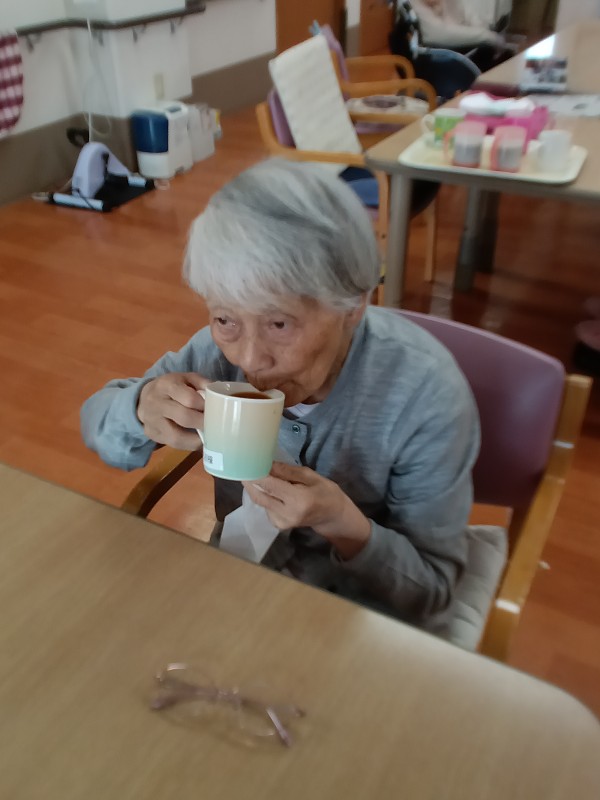 みんなの家・府中では、朝昼夕の三食以外にも9時と15時のおやつにドリンクの時間を設けています。