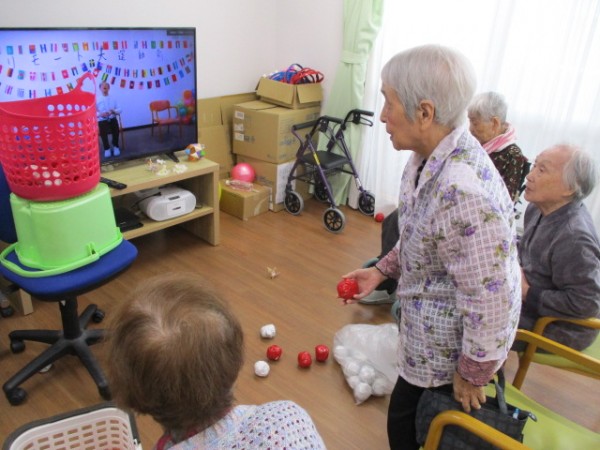 今日は2階でリモート運動会が行われました。 そのご様子をお知らせいたします!! 玉入れ・赤青旗上げゲーム・風船バレーを行いました。