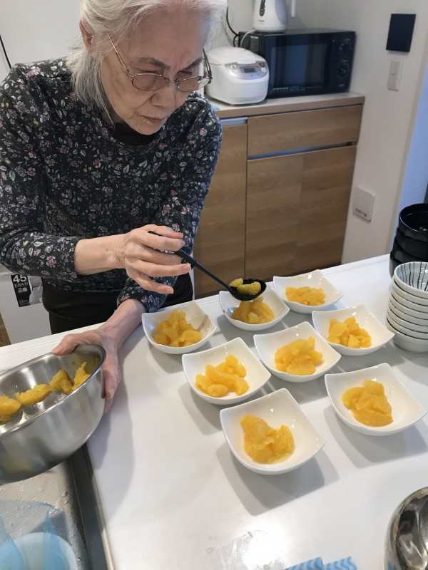 ポイントは小さいミカンを上に乗せることだそうです!きれいに盛り付けされていますね(*^▽^*)