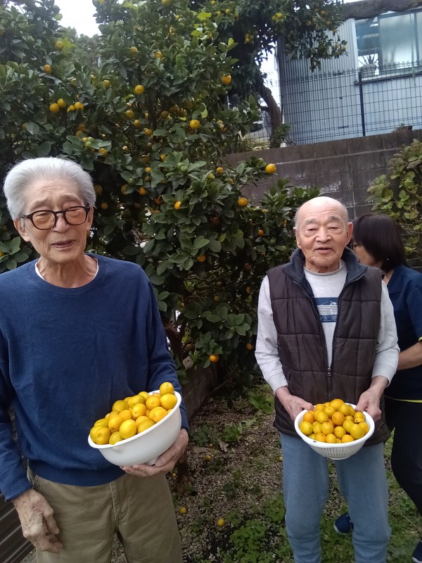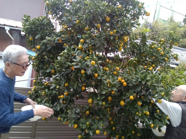 今回は庭に咲いた金柑が収穫の時期が来たのでご利用者様と収穫に行ってきました