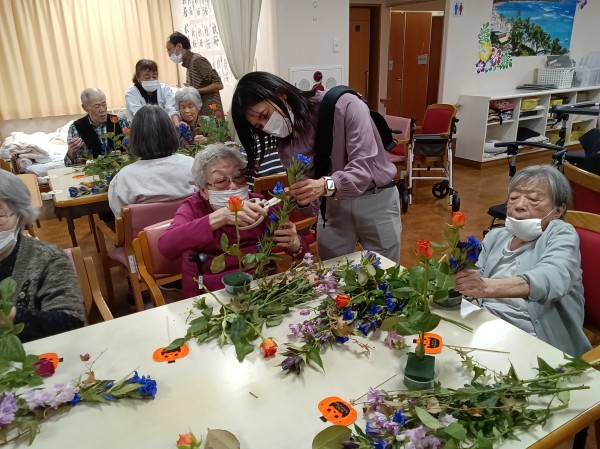 今回はフラワーアレンジメントのご様子と、フラワーに参加して下さった方々へお茶とお菓子をご提供致しました(`・ω・´)!