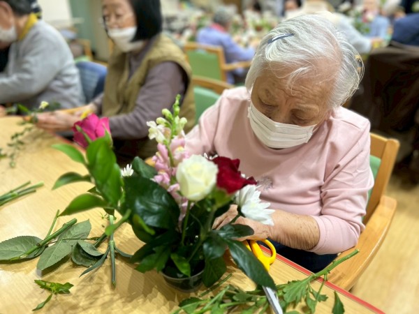 などと、自然と会話も弾み、笑顔があふれる時間でした。花を手にすると皆さんの表情が生き生き!お花の力ってすごいですね。