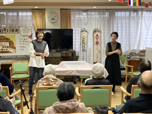 「今日は3歳から5歳くらいまで若返って聞いてくださいね♪」と声がかかると、利用者さまの顔にふっと笑みがこぼれ、会場が一気に柔らかい雰囲気に包まれました。