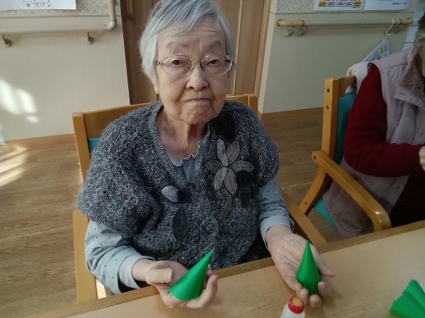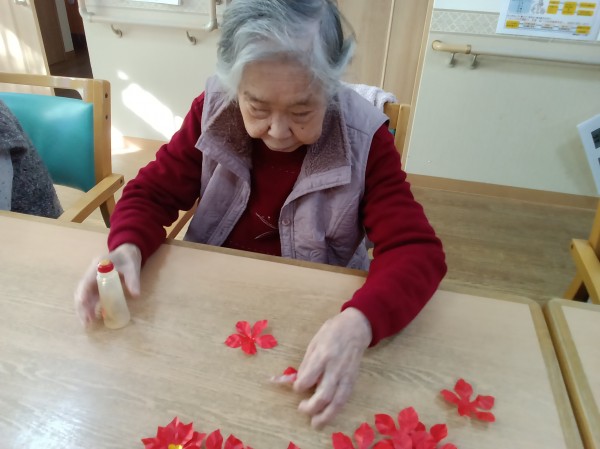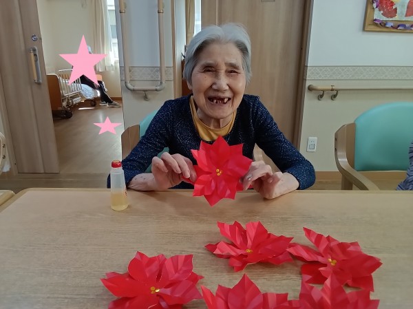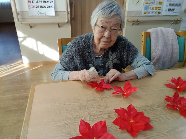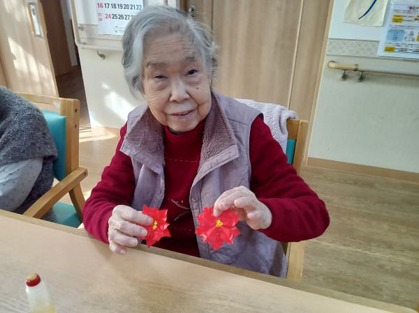 ご入居者様に冬の花などの飾りを作っていただきました。