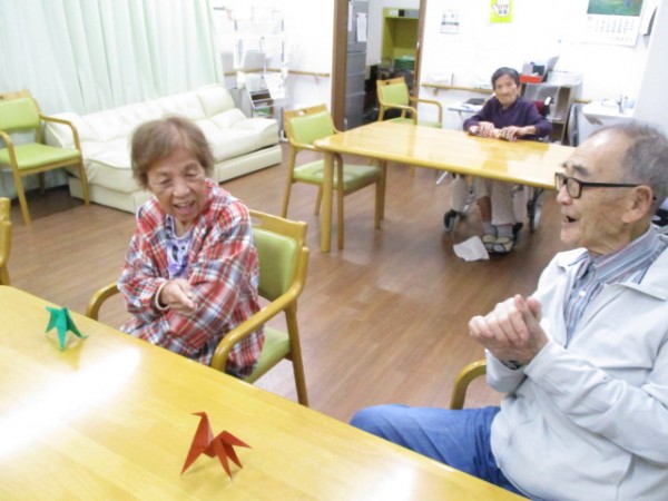 今日は折り紙で動物や鳥を折りました。 折っているご様子をお知らせいたします!! スタッフに教えてもらいながら真剣に作られておられました????