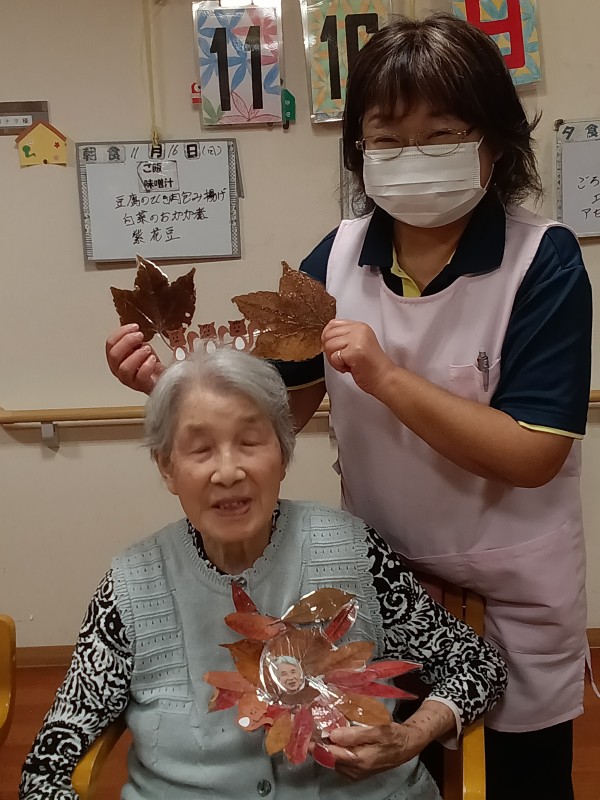 葉っぱを並べたり 円をかいてリースにしたり・・